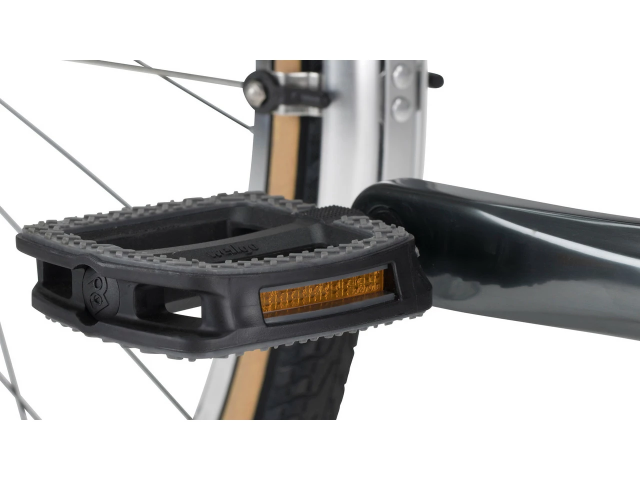 Die Trekking Plattformpedale von 3min19sec bieten Dir viel Grip für einen fairen Preis. Sie haben eine große, standfeste Plattform (95 x 110 mm) aus Kunststoff, die auf beiden Seiten mit einer rutschhemmenden, strukturierten Gummierung versehen wurde. Die Achse aus Bor verfügt über ein zuverlässiges Gleitlager vom Typ DU. Mit dem Trekking Plattformpedal, das natürlich auch die vorgeschriebenen Reflektoren aufweist, bist Du in der Stadt und auf Tour also bestens ausgestattet.