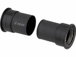 Dieses BB86 Innenlager von C-BEAR dient dem Einbau einer Kurbel mit 30-mm-Achse, z. B. von Rotor, in einen Pressfit-Rennradrahmen mit 86,5 mm Tretlagergehäusebreite. In der zweiten Generation kommt es dank einer Verbreiterung der rechten Lagerschale ganz ohne Spacer aus. Das Innenlager verfügt über leichtlaufende, sehr reibungsarme und effiziente Keramiklager, die ideal auf trockenen, sauberen Straßen funktionieren. Die Lagerschalen wurden aus Aluminium gefertigt.