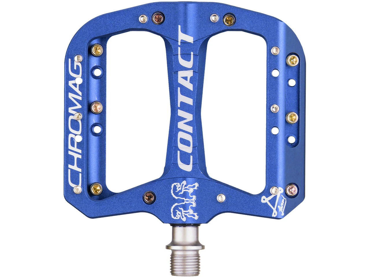 Spezifikationen:Einsatzbereich:MTBAusführung:PlattformpedaleTechnische Daten:Material Pedalkörper:AluminiumMaterial Achse:StahlBauhöhe:13 mm (ohne Pinhöhe)Aufstandsfläche (Breite x Länge):105 x 110 mmAnzahl Pins:24Features:CNC-bearbeitetniedriges, konkaves ProfilDesign by Brandon SemenukHerstellernummern:black:181-001-01red:181-001-04gunmetal:181-001-15bronze:181-001-16dark blue:181-001-09purple:181-001-10orange:181-001-16Lieferumfang:1 Paar Pedale Chromag Contact
