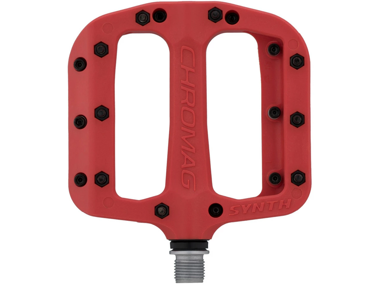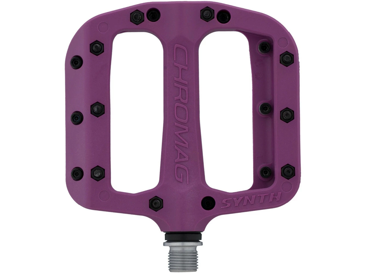 Spezifikationen:Einsatzbereich:Trail, Enduro, FreerideAusführung:PlattformpedaleTechnische Daten:Material Pedalkörper:Polycarbonat, NylonMaterial Achse:Stahl (CrMo)Maße [L x B]:110 x 105 mmAnzahl Pins:24Features:große Plattform, konkaves Designgehärtete Stahl-Pins (max. 12 pro Seite), austauschbar, höhenverstellbarAchse hitzebehandelt6 mm Innensechskant zur Montage an der Kurbel erforderlichHerstellernummern:black:183-001-01red:183-001-02blue:183-001-03green:183-001-04orange:183-001-05purple:183-001-06Lieferumfang:1 Paar Plattformpedale Chromag Synth