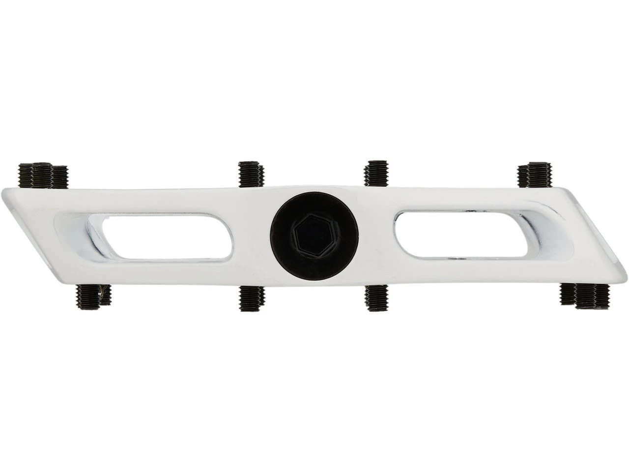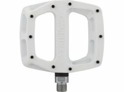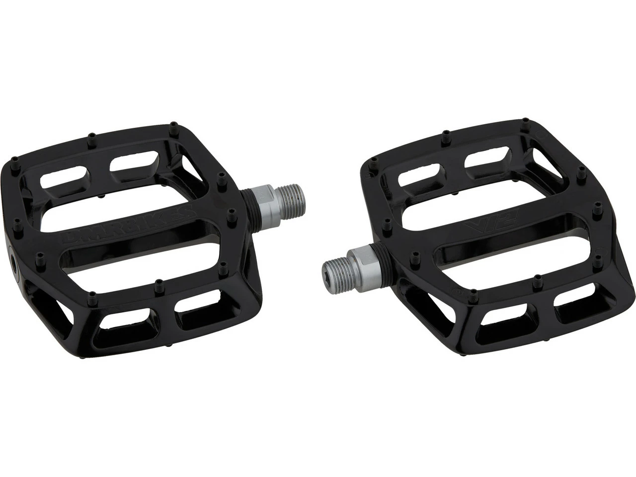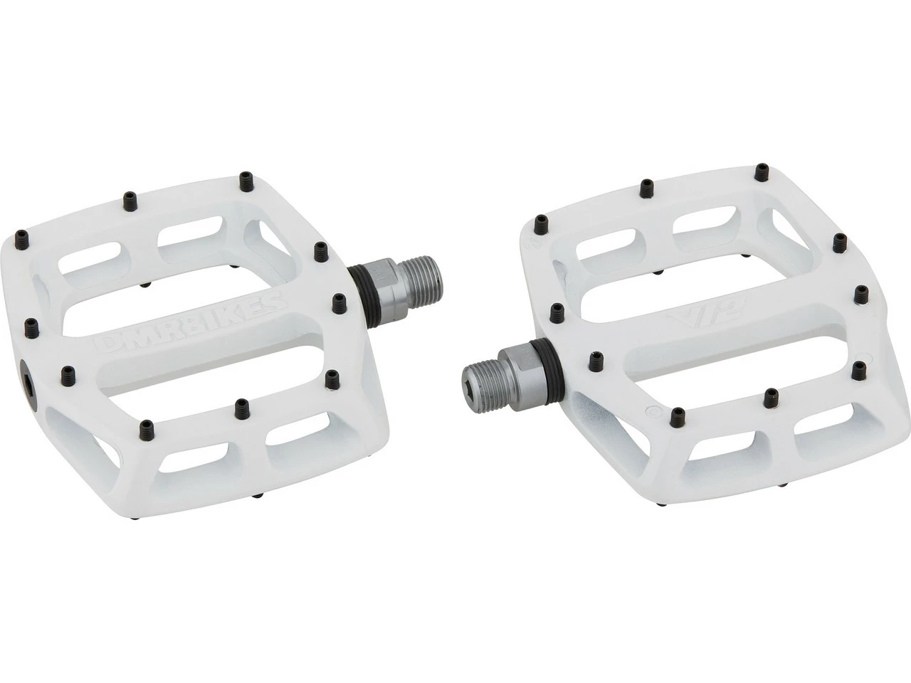 Features:massives Flat-Pedalsuperstabile, oversized CroMoly Achseeinteiliger Aluminium Pedalkäfig im „Double concave” Designdoppelte Industrie- und Gleitlageraufwendige Dichtung, austauschbare PinsLieferumfang:1 Paar Plattformpedale DMR V12
