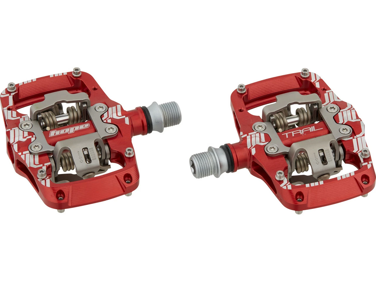 Spezifikationen:Einsatzbereich:All MountainAusführung:Klickpedale mit PlattformPedalsystem:HopeMontage Schuhplatte:2-LochTechnische Daten:Material Pedalkörper:AluminiumMaterial Achse:Stahl (CrMo)Lagerung:PatronenlagerBewegungsfreiheit:4° (No. 4), 5° (No. 5)Auslösewinkel:12° (No. 4), 13° (No. 5)Empfohlene Schuhplatten:Hope CleatsAnzahl Pins pro Pedal:8Features:Trail-Klickpedale mit Plattform aus CNC-gefrästem AluminiumHope-eigenes Dual-Klick-System für festen Halt und gleichmäßiges Ein- und Ausklickverhaltenstufenlos einstellbare Federkraftweiter Winkel für besonders flaches oder steiles EinklickenBefestigungsmöglichkeiten für 4 höhenverstellbare Pins pro Pedalseitezwei Paar Cleats mit 4° oder 5° Float und unterschiedlichem Auslösewinkel2 mm seitlicher FloatCleats und Klickmechanismus aus rostfreiem Edelstahlwartungsarm und komplett zerlegbarHerstellernummer:PDUTC