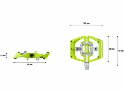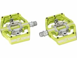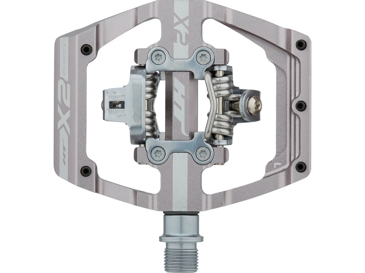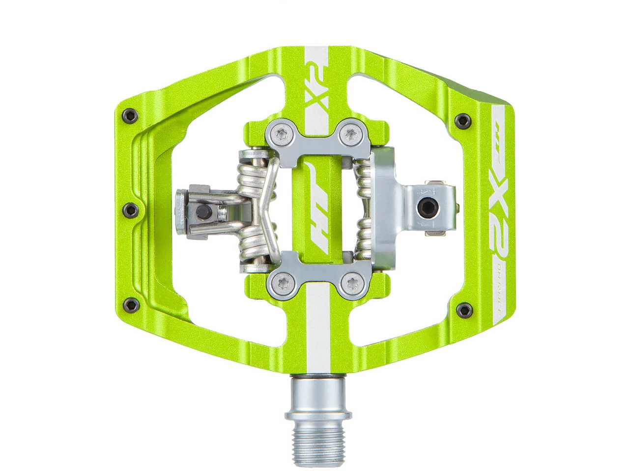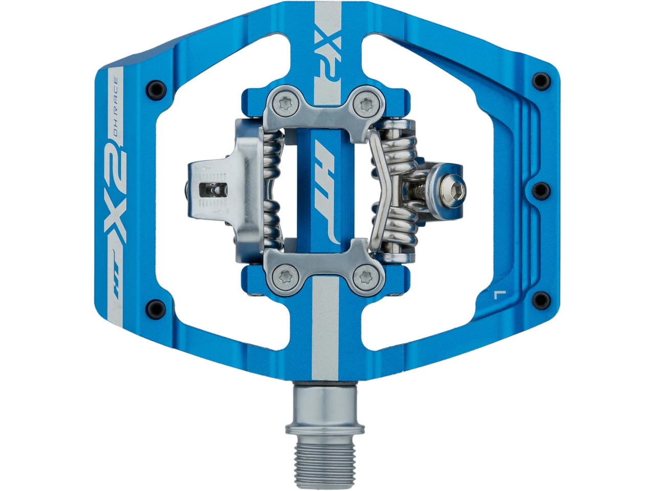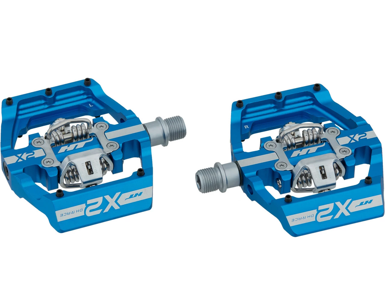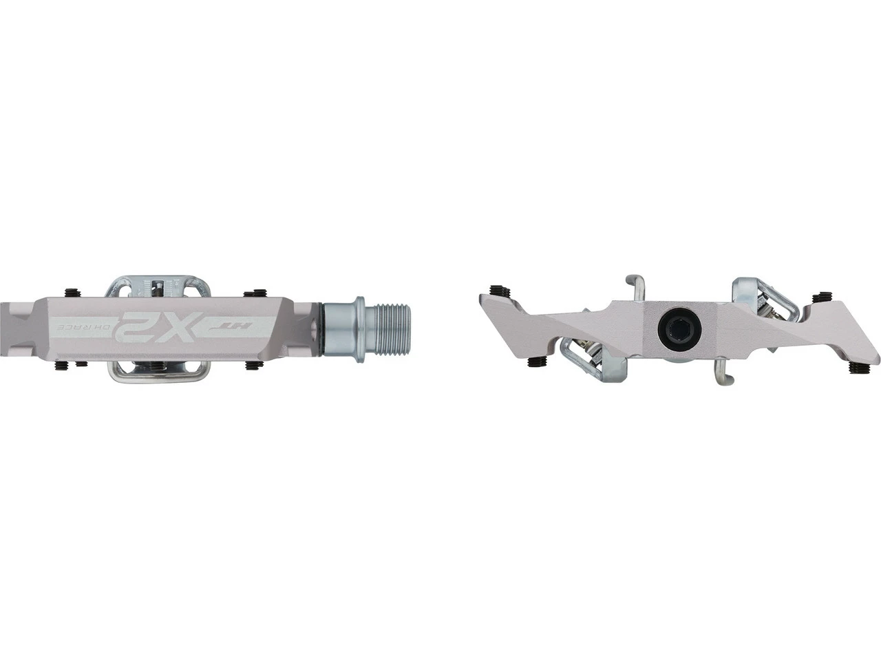 Spezifikationen:Einsatzbereich:DownhillAusführung:Klickpedale mit KäfigPedalsystem:HT Cleat SystemTechnische Daten:Material Pedalkörper / Plattform:Aluminium 6061, CNC-gefertigtMaterial Achse:Cromoly, CNC-gefertigtLagerung:EVO+-System, DU-BuchsenBauhöhe:14 mmAufstandsfläche (Breite x Länge):94 x 85 mmBindung:doppelseitigAuslösewinkel:13°seitliches Spiel:H30: 4,5°, X1: 4°, X1F: 8°, X2: 4°empfohlene Schuhplatten:X1, X1F, X2Anzahl Pins:10 x SP7 (pro Pedal)Features:nur 14 mm dickschmutzabweisende Bauformleichter Ein- und AusstiegCNC-gefertigte Achse für extra Steifigkeit und Haltbarkeit10 austauschbare SP7-Pins pro PedalHerstellernummern:black:HT-X-2-(001)grey:HT-X-2-(013)red:HT-X-2-(023)apple green:HT-X-2-(024)blue:HT-X-2-(010)Lieferumfang:1 Paar Klickpedale HT DH RACE X21 Paar Cleats / Pedalplatten HT X1inkl. Pins