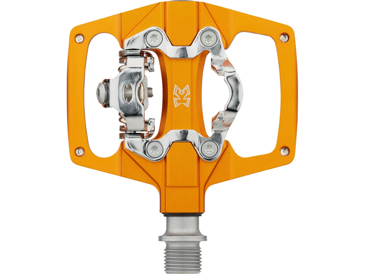 Das AM Trap ist ein leichtes, edles und robustes Pedal kompatibel mit Shimano SPD. Der Pedalkörper ist aus CNC 6061 Aluminium gefertigt, Stahlachse und Bindungen sind aus CroMo. Eine Seite SPD-System und eine Seite Plattform mit 8 Pins. Die austauschbaren Pins auf der Plattformseite geben selbst auf der wildesten Strecke beste Standsicherheit.