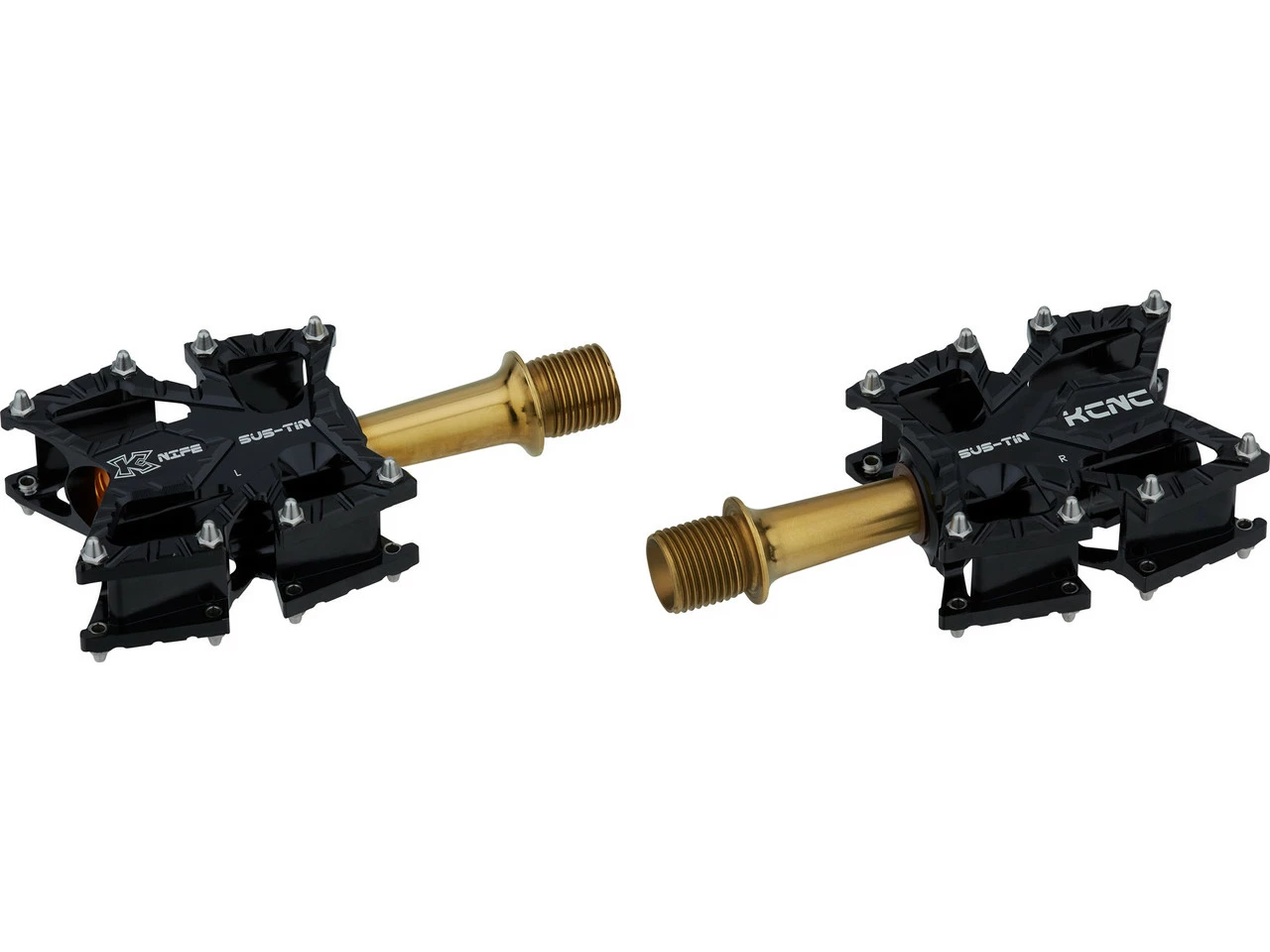 Spezifikationen:Einsatzbereich:RennradAusführung:PlattformpedaleTechnische Daten:Material Pedalkörper / Plattform:Aluminium 7075Material Achse:StahlLagerung:Industrielager, NadellagerBauhöhe:20 mmPins:16 (pro Pedal)Lieferumfang:1 Paar Plattformpedale KCNC Road2 x Pedalpin KCNC1 x Innensechskantschlüssel