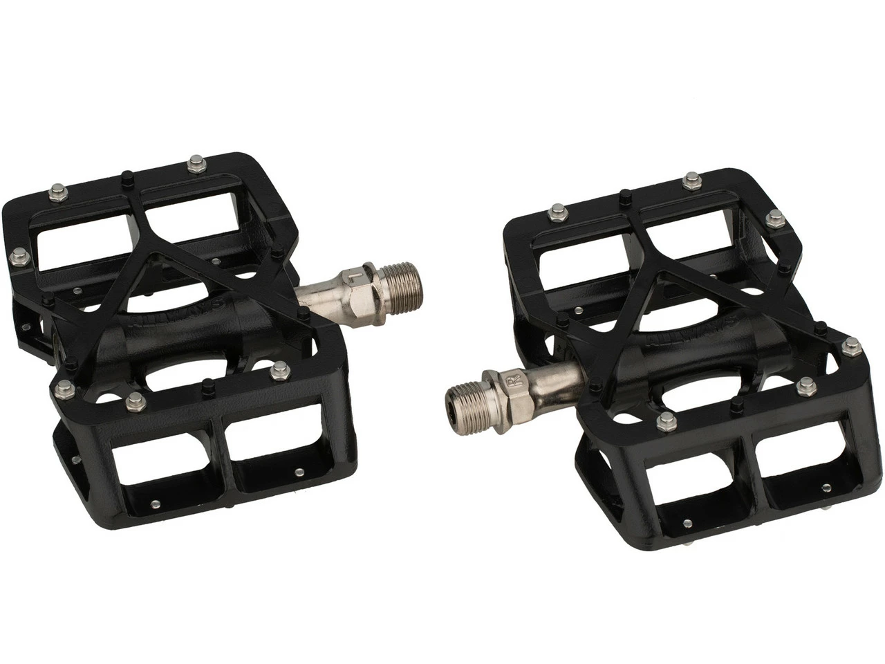 Spezifikationen:Einsatzbereich:Cross Country, Touring & Trekking, CityAusführung:PlattformpedaleTechnische Daten:Material Pedalkörper:AluminiumMaterial Achse:StahlLagerung:3-fach gelagertDichtung:Lippendichtung in allen LagernMaße [LxB]:110 x 84 mmFeatures:zweiseitige Plattformpedale mit Pinsleicht konkave Plattform für eine stabile Fußposition und besseren GripHerstellernummer:4560369004270