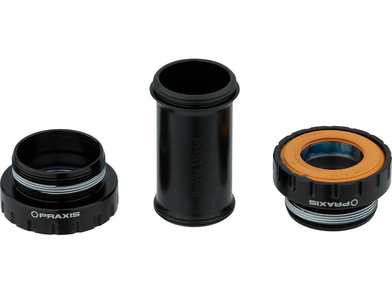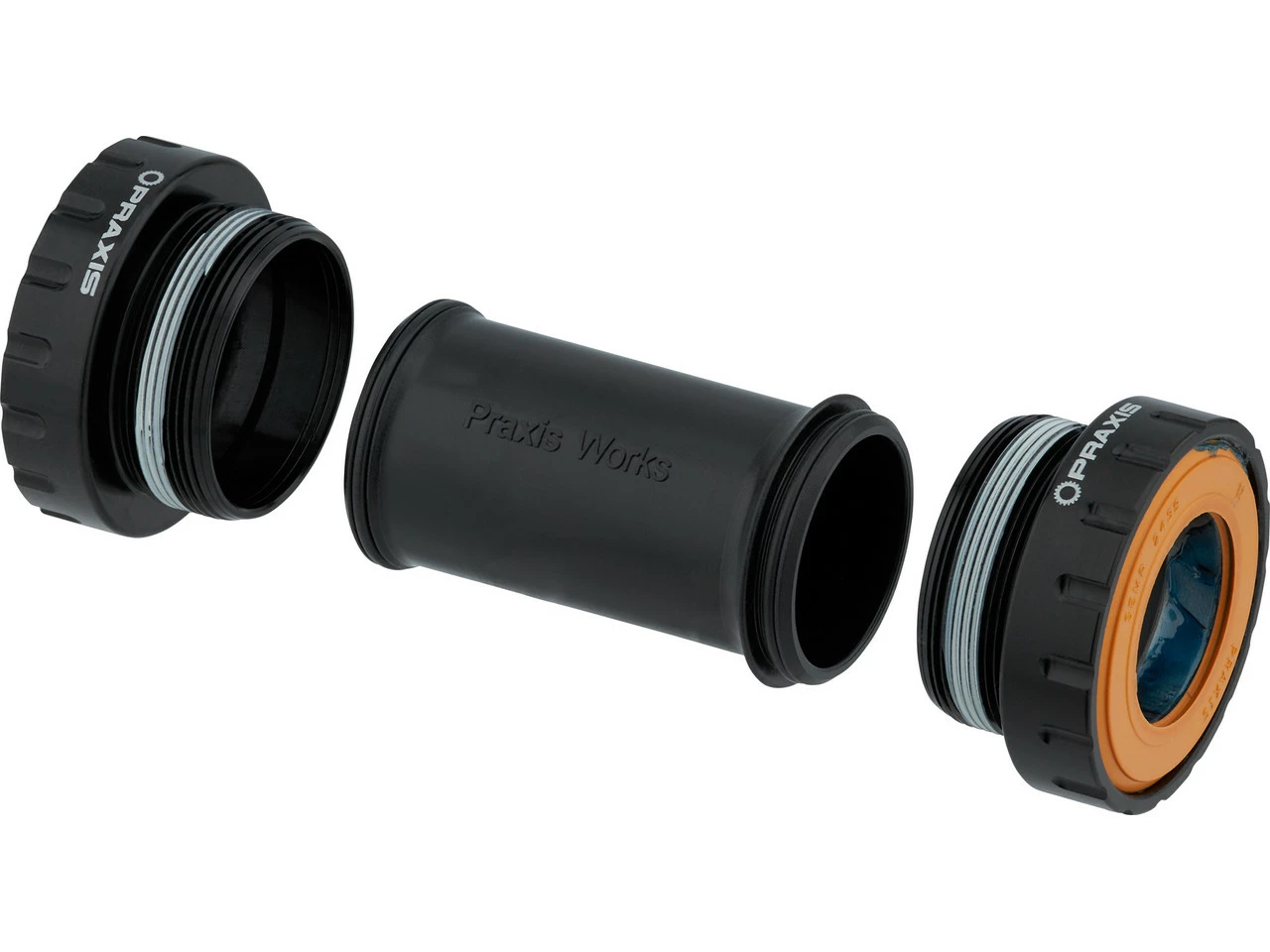 Lieferumfang:1 x Lagerschale Praxis Works BSA mit Lager, links1 x Lagerschale Praxis Works BSA mit Lager, rechts1 x Innenlagerhülse Praxis Works2 x Dichtung orange