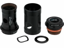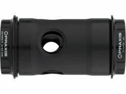 Konversionsinnenlager von Praxis Works sind die führende Innenlagerlösung für alle Shimano, Campagnolo Ultra Torque oder SRAM GXP Kurbeln. Sie passen für BB30, PF30 oder Specialized OSBB Rahmen. Mit den patentierten Lagern werden nicht nur alle Toleranzen der Rahmenhersteller neutralisiert, sondern es wird auch eine erhöhte Lebensdauer gewährleistet. Bei diesen Innenlagern wird die Nicht-Antriebseite eingepresst und dann die Antriebseite darin verschraubt. Beim Verschrauben spreizt sich das Lager bis zu einer definierten Endposition, welches dem jeweiligen Pressfit entspricht, und sitzt fest, ohne Geräusche zu machen. Außerdem wird in Antriebsrichtung ein oranger Elastomer-Gummiring komprimiert, der sich dann wiederum zum Rahmen hin ausdehnt und das Lager dadurch noch einmal zusätzlich verklemmt. Das Elastomer-Material gleicht Toleranzen aus und puffert zugleich eventuelle Knackgeräusche weg.