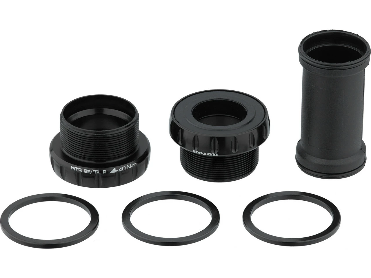 Lieferumfang:1 x Lagerschale Rotor BB1 MTB rechts, inkl. Stahl-Lager1 x Lagerschale Rotor BB1 MTB links, inkl. Stahl-Lager1 x Innenlagerhülse Rotor BB1 MTB3 x Spacer 2,5 mm