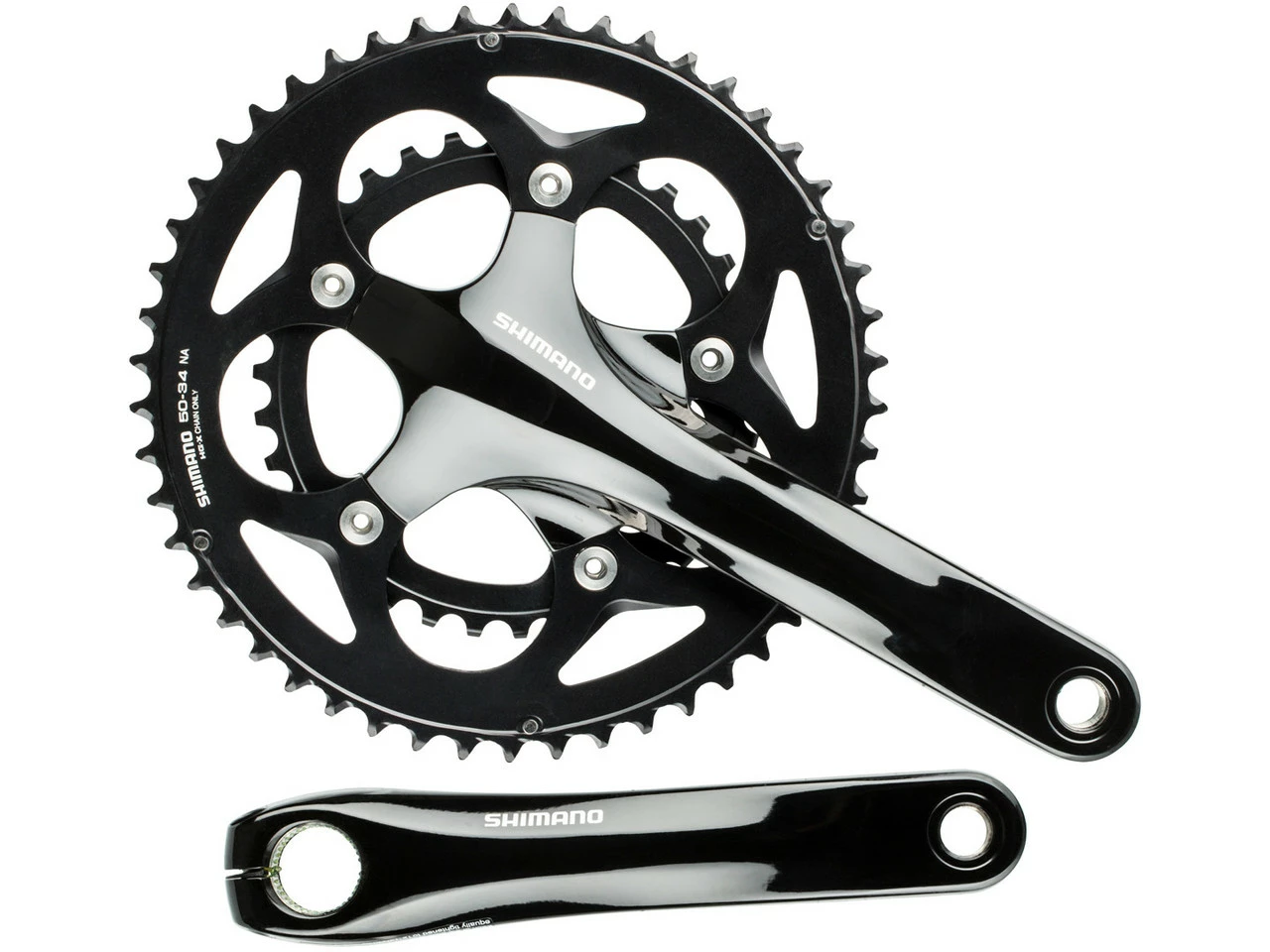 Spezifikationen:Einsatzbereich:RoadKompatibilität:Shimano 2×10-fachKettenblattbefestigung:110 mm Lochkreis, 5-ArmTechnische Daten:Material Kurbelarme:AluminiumMaterial Kettenblätter:AluminiumAbstufung:34-50Kurbelarmlänge:170,0 mm, 175,0 mmKettenlinie:43,5 mmQ-Faktor:150,3 mmAchsdurchmesser:24 mmKompatible Gehäusebreite (bei BSA-Innenlager):68 mmInnenlager (empf.):BB-RS501 oder BB-RS500-PB Pressfit Hollowtech II (nicht im Lieferumfang)Kette (empf.):HG-X 10-fach (CN-HG54)Kompatibilität:Schalt-/Bremsgriff:ST-6700, ST-5700, ST-4600, ST-R460, ST-4700, ST-RS405, ST-4720, ST-4725, ST-RX400Schaltgriff:SL-R780, SL-4600, SL-R460, SL-4700Umwerfer:FD-4600, FD-R460, FD-4700Innenlager:BB-R9100, SM-BB9000, SM-BBR60, SM-BB6700, SM-BB5700, BB-RS501, BB-RS500, SM-BB4600, SM-BB92-41B, SM-BB72-41B, SM-BB71-41B, BB-RS500-PBKette:CN-M981, CN-M980, CN-HG95, CN-HG94, CN-HG75, CN-HG74, CN-HG54Features:erschwingliche Kurbelgarnitur fĂĽr 10-fach-Systeme ohne Kompromisse bei der SchaltleistungKurbelarme lackiert, Kettenblätter eloxiertKettenblattschrauben aus rostfreiem StahlTechnologie:2-Piece Crankset