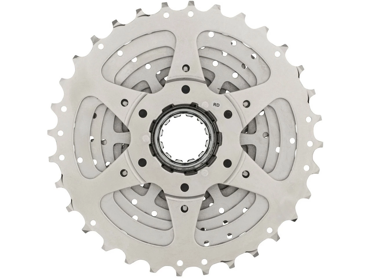 Shimano Hyperglide-Kassetten (HG-Kassetten) haben strategisch positionierte Steighilfen und spezielle Zahnprofile, damit die Kette direkt komplett auf das nächste Ritzel geführt werden kann. So wird vermieden, dass die Kette die Zahnspitzen erst nur berührt, bevor sie richtig aufsetzt. Das optimiert die Kettenführung und ermöglicht schnelles, hochgradig effizientes Schalten.