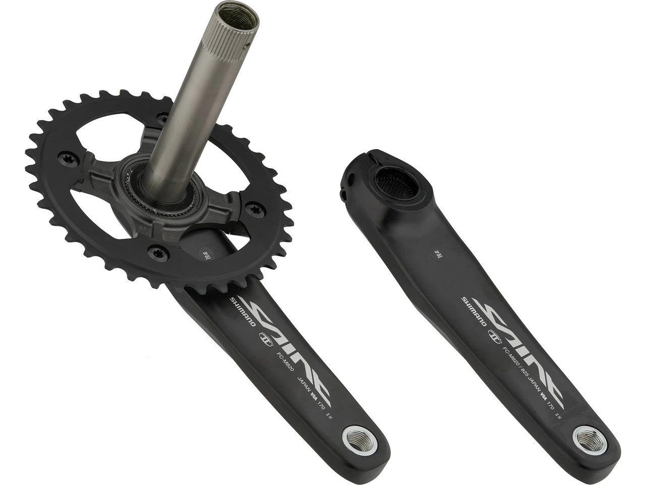 Spezifikationen:Einsatzbereich:Downhill, EnduroKompatibilität:Shimano 1×10-fachKettenblattbefestigung:104 mm Lochkreis, 4-ArmTechnische Daten:Serie:Saint M820Material Kurbelarme:AluminiumMaterial Kettenblätter:AluminiumMaterial Achse:StahlAbstufung:36 ZähneKurbelarmlänge:165,0 mm, 170,0 mm, 175,0 mmKettenlinie:50,4 mmQ-Faktor:178 mmAchsdurchmesser:24 mmKompatible Gehäusebreite (bei BSA-Innenlager):68 mm / 73 mmInnenlager:SM-BB80 Hollowtech IIKette (empf.):HG-X 10-fach (bspw. CN-HG95)Kompatibilität:Einbaubreite hinten: