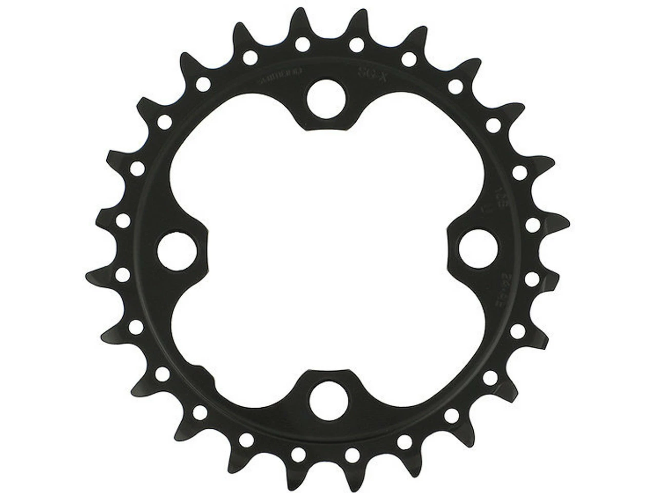 Spezifikationen:Einsatzbereich:All Mountain, Enduro, Cross Country, Touring & TrekkingBefestigung:104/64 mm Lochkreis, 4-ArmZähne:24 Z, 32 Z, 42 ZSchaltstufen:3×10-fachTechnische Daten:Kombinationsmöglichkeiten:24-32-42 ZMaterial:Stahl (24 Z), Stahl-Carbon-Komposit (32 Z), Aluminium (42 Z)AusfĂĽhrungen:24 Zähne: