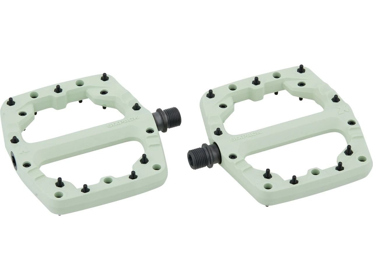 Spezifikationen:Einsatzbereich:DownhillAusfĂĽhrung:PlattformpedaleTechnische Daten:Material Pedalkörper:glasfaserverstärktes PolyamidMaterial Achse:Stahl (CrMo)Lagerung:zwei Wälzstahlllager, ein igus GleitlagerDichtungen:Custom Radial SealBauhöhe:18,5 mm (Mitte), 15 mm (Kante)MaĂźe [L x B]:114 x 105 mmAnzahl Pins pro Pedal:18Features:robust und leichtäuĂźerst belastbar und zuverlässigHalt durch groĂźe Standfläche und 9 lange Stahlpins pro Seitethermochemisch gehärtete, korrosionsbeständige CrMo-Achsevon SIXPACK entwickelte Custom Radial Seal Dichtunghergestellt in DeutschlandVariante “ infinity black“ aus recyceltem MaterialASTM-Kategorie 5: fĂĽr den Einsatz in extremem GeländeHerstellernummern:infinity black:716910steel grey:716911foxhunt orange:716912smoked green:716913pine green:716914red velvet:716916swedish yellow:716917Lieferumfang:1 Paar Plattformpedale Sixpack Racing Kamikaze PA4 x Ersatzpin4 x Mutter1 x Innensechskant