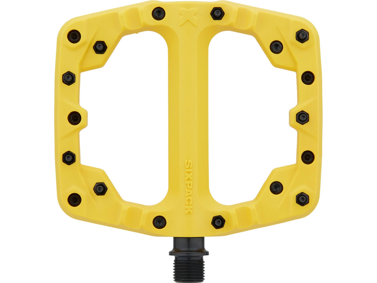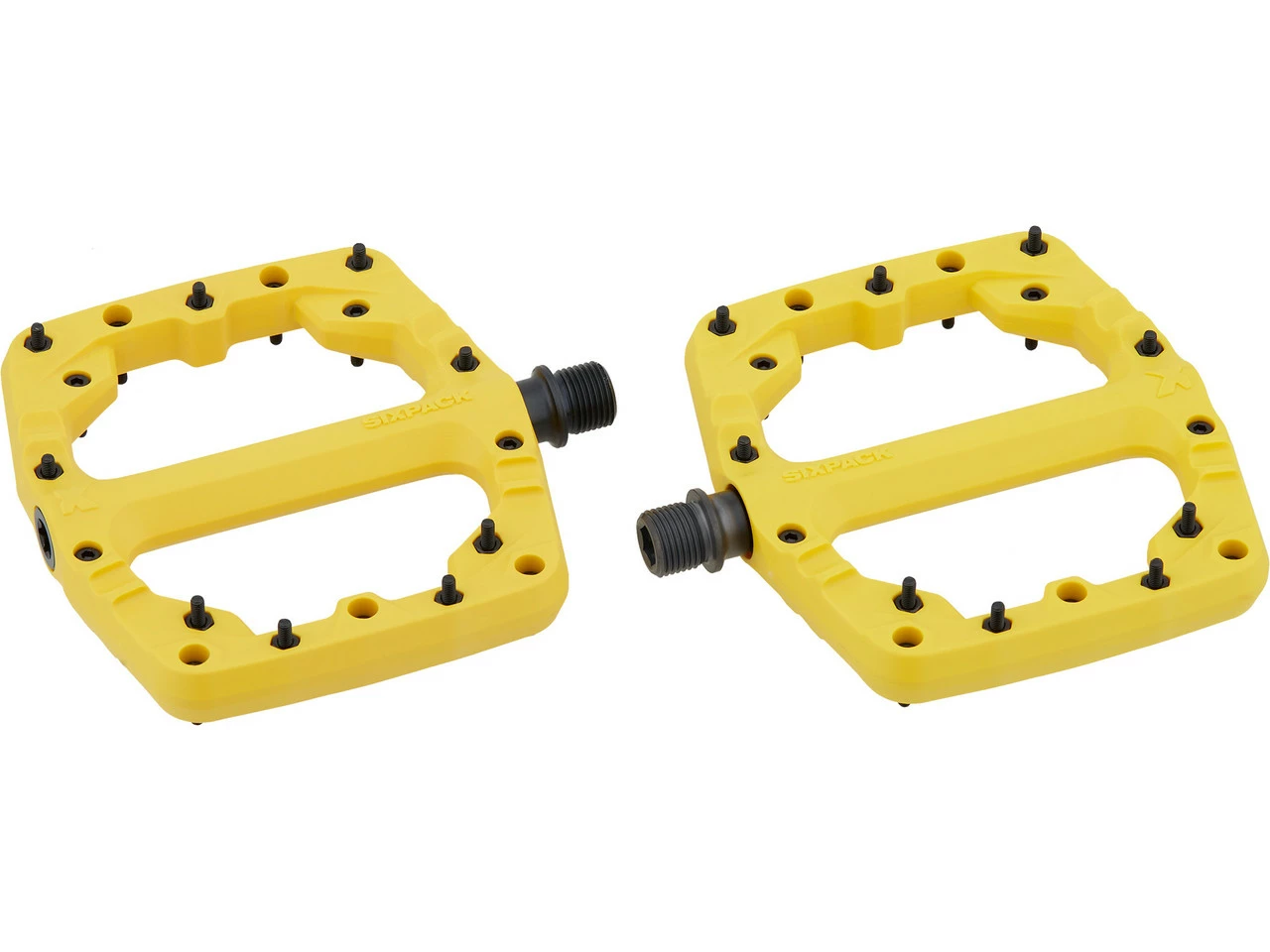 Die Sixpack Racing Kamikaze Plattformpedale aus glasfaserverstärktem Polyamid sind strapazierfähig und ihre langen Stahlpins sorgen auch auf schwierigsten Downhill-Strecken für zuverlässigen Halt.