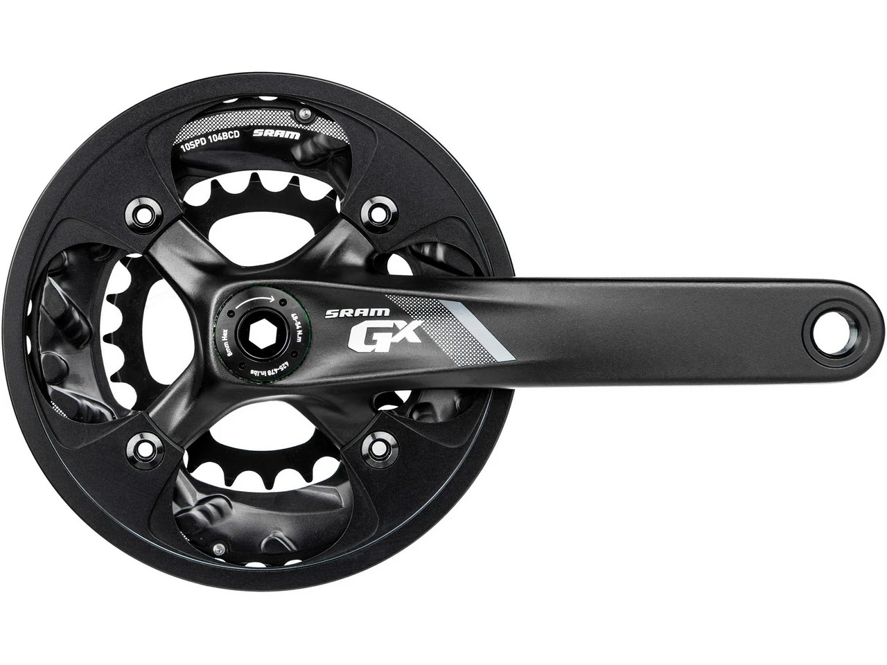 Herstellernummern:170,0 mm 22-36:00.6118.351.000175,0 mm 22-36:00.6118.351.001170,0 mm 24-38:00.6118.351.002175,0 mm 24-38:00.6118.351.003Lieferumfang:1 x Kurbelgarnitur SRAM GX 10001 x Kettenblatt SRAM 22 oder 24 Zähne1 x Kettenblatt SRAM 36 oder 38 Zähneohne BB30-Innenlager