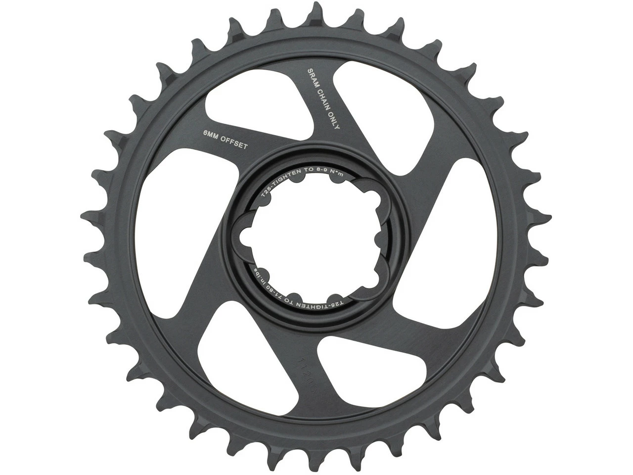 Spezifikationen:Einsatzbereich:Cross Country, All Mountain, EnduroBefestigung:SRAM Direct MountZähne:30 Z, 32 Z, 34 Z, 36 ZSchaltstufen:1×11-, 1×12-fachTechnische Daten:Offset:6 mmMaterial:AluminiumFeatures:fĂĽr die Verwendung mit Eagle Ketten und Schaltgruppen optimiertguter Kettenhaltlanglebig, reibungsarm und leiseTechnologien:X-Sync 2™: