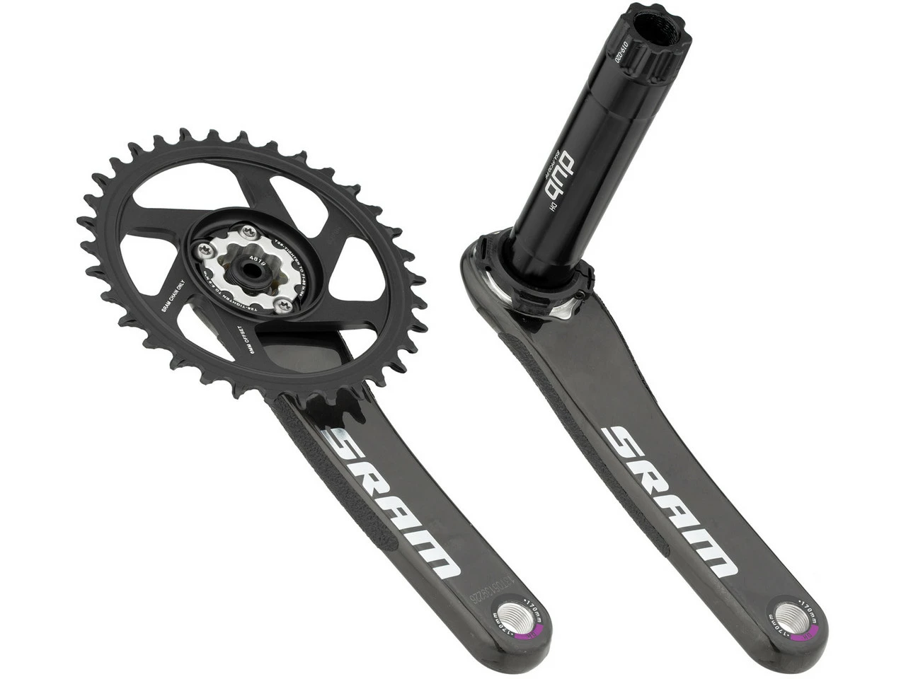 Die X01 DH DUB Direct Mount 11-fach Carbon Kurbelgarnitur ist leicht und stark im Downhill-Einsatz