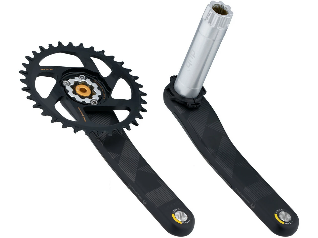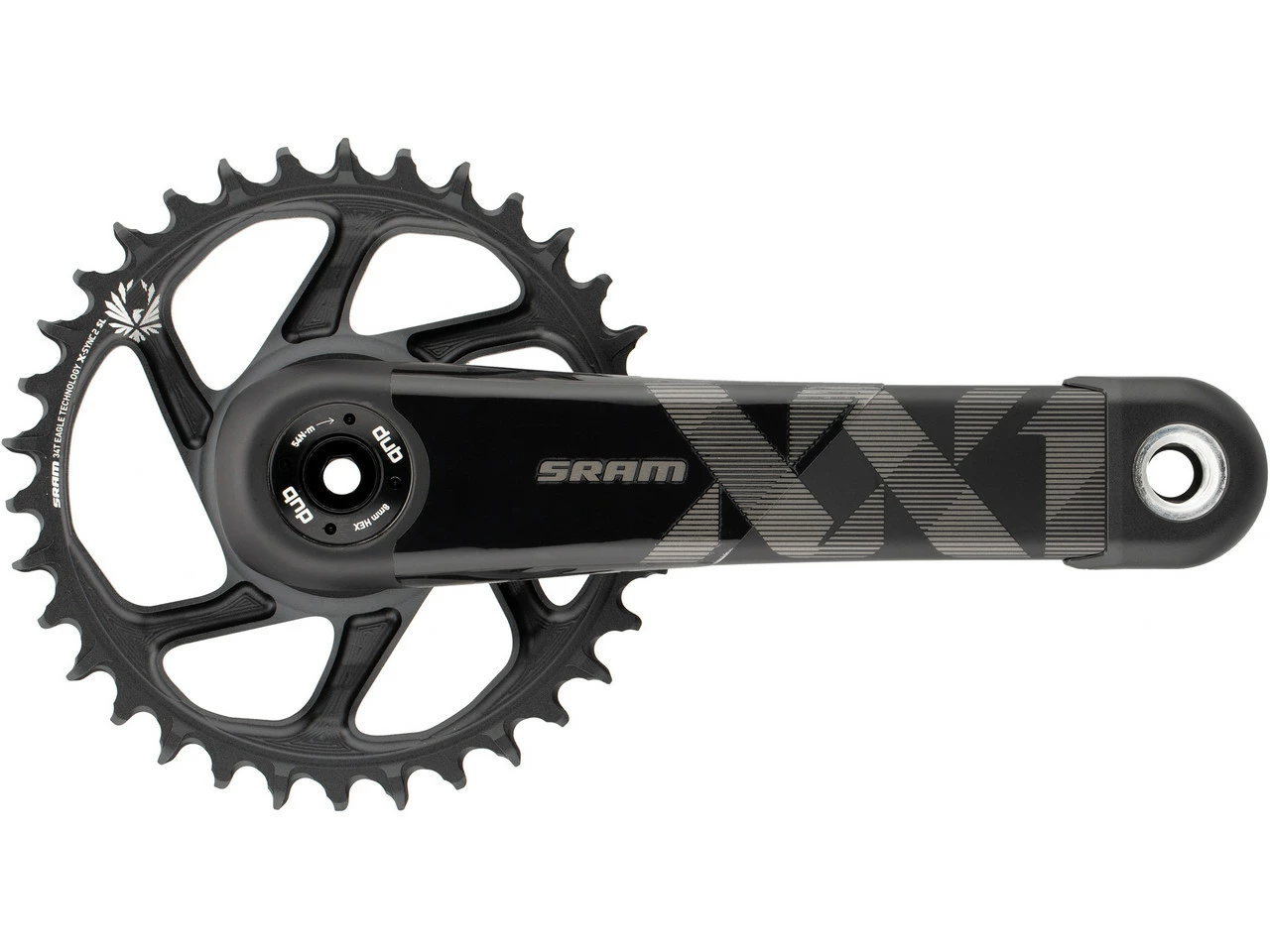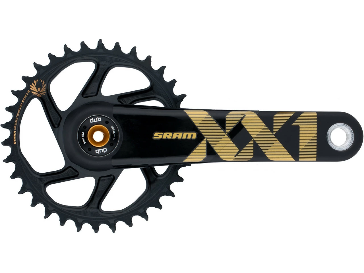 Kurbelarmlänge: 175,0 mmHerstellernummer: 00.6118.526.000 (gold), 00.6118.526.004 (black)Lieferumfang:1 x Kurbelgarnitur SRAM XX1 Eagle Direct Mount DUB1 x Kettenblatt SRAM 34 Zähneohne DUB-Innenlager