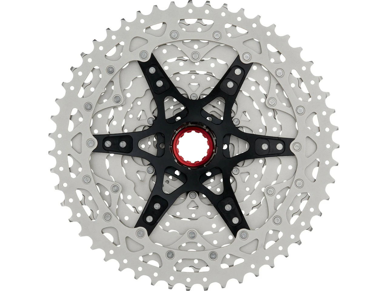 Verwende die SunRace CSMZ800 Kassette mit ihren 12 Stahlritzeln, wenn Du einen Laufradsatz mit Shimano MTB-Freilauf und einen Shimano 12-fach-Antrieb kombinieren willst. Die Kassette überzeugt durch ihre breite Abstufung von 11-51 Zähnen und ist mit der Fluid-Drive-Plus™-Technologie für saubere und zuverlässige Schaltvorgänge ausgestattet. Zur Gewichtsersparnis wurde sie außerdem mit zahlreichen Löchern versehen.