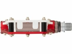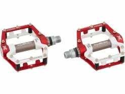 Spezifikationen:Einsatzbereich:BMX, MTBAusführung:PlattformpedaleTechnische Daten:Material Pedalkörper:Aluminium 6061 (CNC-bearbeitet)Material Achse:CrMo StahlGröße:99 x 100 x 22 mmGewinde:9/16“Lagerung:PatronenlagerDichtung:einfach, GummiPins:20 pro Seite, austauschbarSonstiges:MCU-Elastomere absorbieren Fahrvibrationen und schonen die GelenkeHerstellernummern:schwarz-silber:XMX18AC blackrot-weiß:XMX18AC redblau-gold:XMX18AC blue/goldFarbindex:Unsere Farbangabe bezieht sich auf die jeweils zweifarbig ausgeführte Plattform.